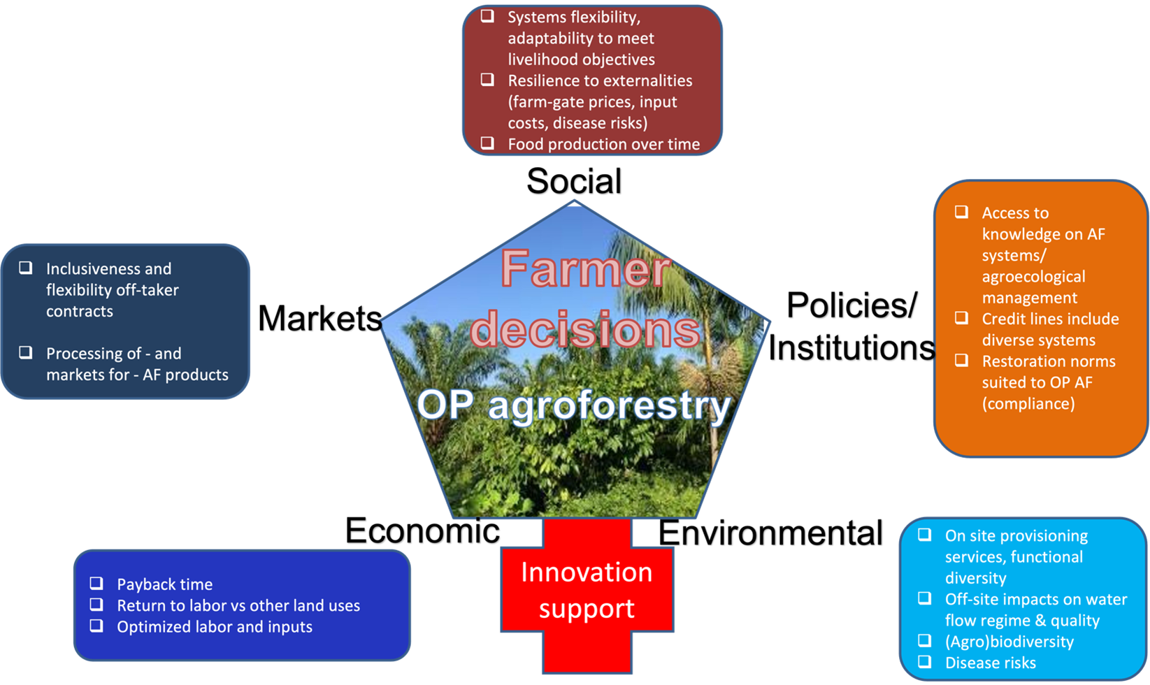 - assessing the social, economic and ecological performance and trade-offs of different farmer-led oil palm agroforestry systems: