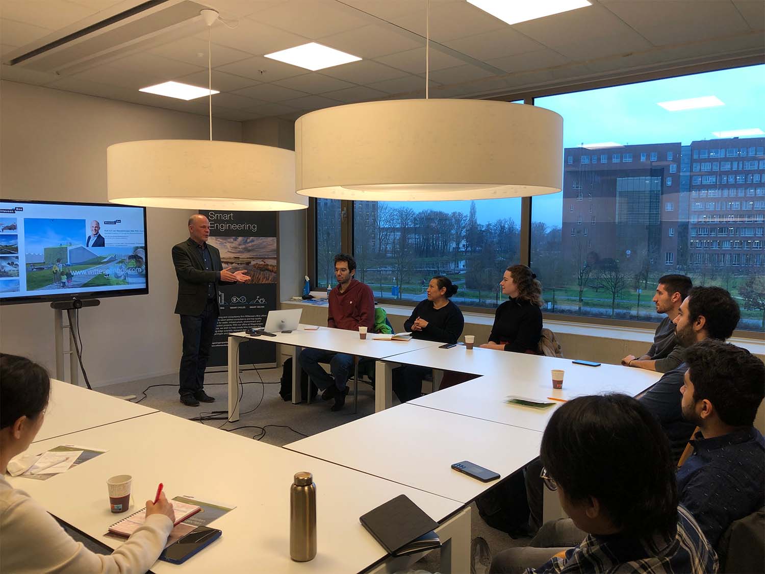 Arjen van Nieuwenhuijzen van Witteveen & Bos benoemde tijdens zijn presentatie: 'De WUR-campus is een goede locatie om betrokken te zijn met toekomstige werknemers; jullie als studenten!’