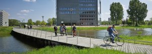 Het centrale terrein van Wageningen Campus is een grote, groene oase waar mensen elkaar kunnen ontmoeten of kunnen ontspannen. Breng zeker een bezoek aan de natuurtuin achter gebouw Lumen. Deze tuin werd in 1998 aangelegd met grondsoorten die karakteristiek zijn voor de omgeving van Wageningen. In de bloemrijke graslanden van Wageningen Campus groeien honderden plantensoorten, waaronder ook bijzondere soorten zoals orchideeën. De groene omgeving biedt een goede habitat voor talloze vogels, waaronder spechten en ijsvogels. In de natuurtuin is bovendien een speciale schuilplaats voor vleermuizen. Lees de Green Vision for Wageningen Campus voor meer informatie.