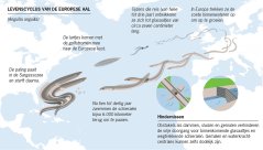 De paling heeft het al decennia moeilijk. Sluizen en gemalen vormen nog altijd grote obstakels voor de mysterieuze trekvis, blijkt uit onderzoek. Intussen komt stukje bij beetje wel de kweek van de volledige palingcyclus in zicht. Als dat lukt, hoeven er voor de palingkweek geen glasaaltjes meer gevangen te worden.