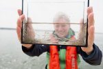Voor zijn onderzoek in opdracht van het ministerie van LVVN, Rijkswaterstaat en waterschappen, vangt Griffioen glasaal en geeft ze – na een verdoving – een kleurtje dat verschilt per locatie en tijdstip. De doorzichtige visjes zijn dan ongeveer twee jaar oud en een centimeter of zeven lang. ‘Ze zijn nog te klein om ze uit te rusten met een zender en daarom geven we ze de merkjes om ze te volgen op hun weg naar het zoete water.’ De afgelopen jaren zijn meer dan 150 duizend glasalen van een merkje voorzien. ‘We proberen te achterhalen hoeveel glasalen er zijn, hoelang ze worden tegengehouden door bijvoorbeeld een gemaal en of ze uiteindelijk naar binnen kunnen komen.’ Om te achterhalen hoe de visjes verder door een gebied migreren, hebben de onderzoekers duizenden gemerkte glasalen in verschillende groepen losgelaten, onder meer in de buitenhaven van IJmuiden. Griffioen: ‘We zagen op het Noordzeekanaal bijvoorbeeld dat glasalen prima naar binnen kunnen komen, maar dat ze eenmaal in het Noordzeekanaal alsnog ophopen bij de gemalen naar het achterland. Verschillende vispassages werken goed, zoals bij gemaal Halfweg. Daar komt veertig tot tachtig procent van de glasalen succesvol binnen. Bij de meeste vispassages zien we helaas nog maar matig succes met soms een effectiviteit van enkele procenten.’