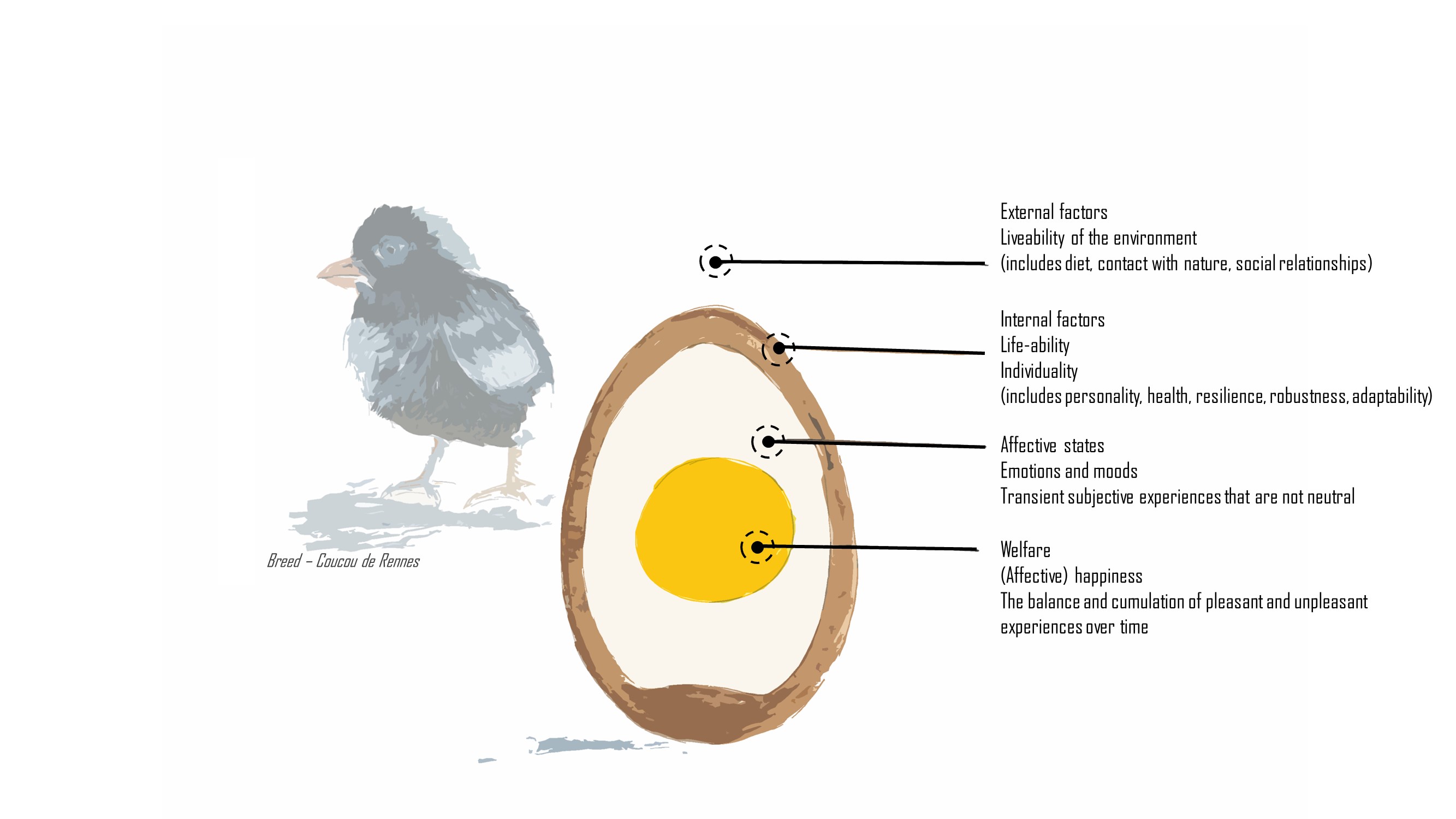 Ondanks hun expertise in koeien en varkens, besloten Webb en Reimert het begrip dierenwelzijn te harmoniseren in een kader dat veel weg heeft van een ei. Ze noemen het liefkozend ‘het welzijns-ei’.