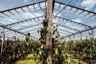 Appeltelers spannen al jaren netten boven hun bomen om ze te beschermen tegen hagelschade. Maar waarom dan niet tegen schimmels, ziekten en plagen? „Ja, goede vraag”, zegt Van der Maas. „Uiteindelijk is het een economische overweging. Appels en peren beslaan zo’n 90 procent van de fruitteelt in Nederland. Dat zijn veel hectaren die je zou moeten overkappen.” Daar komt bij: in het landschap zien al die overkappingen er een stuk minder mooi uit.