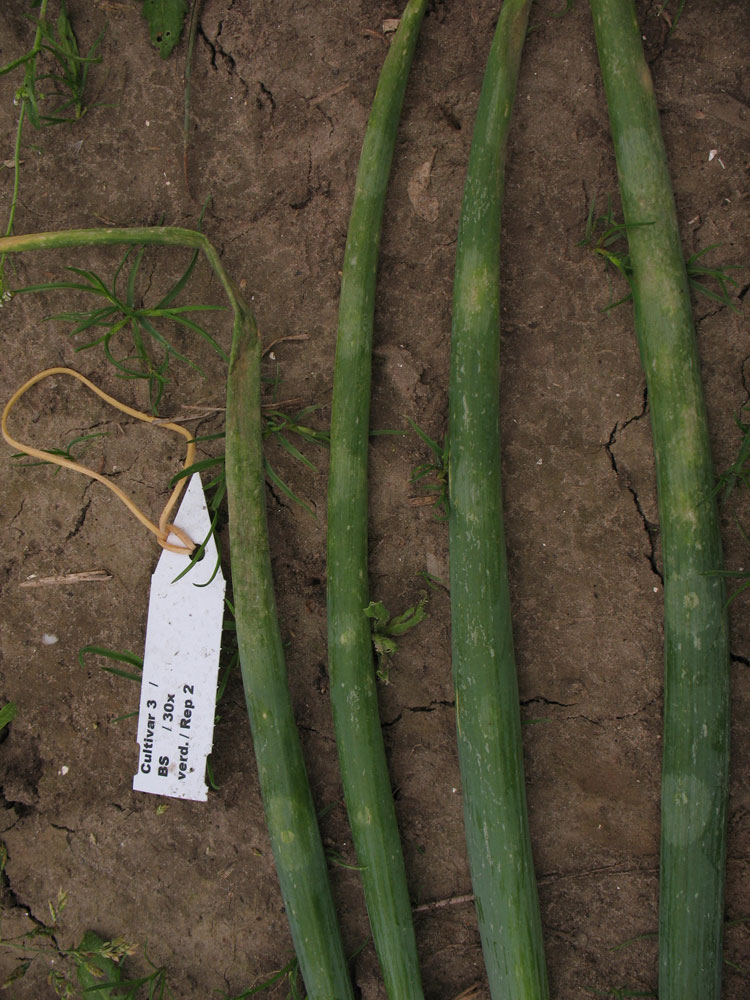 Een veldproef werd uitgevoerd, 1-4 weken voor de oogst. De planten in sommige percelen waren aangetast door trips of schimmels. De reactie van de planten op eiwitinfiltratie was niet altijd eenduidig in herhalingen. De matige kwaliteit van de planten maakte het soms moeilijk om de resultaten te interpreteren.